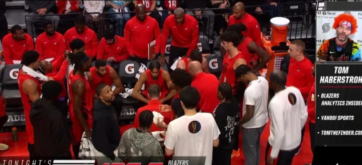 本场比赛的首发阵容,开拓者:阿夫迪亚、卡马拉、克林根、夏普、霍勒迪。