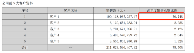 这个业务的核心又高度绑定在苹果公司身上。2024年,前五大客户贡献了公司近80%的收入,达2110亿元,其中最大的客户苹果独占1901亿元,占比高达70.74%。相比之下,第二大客户的贡献只有61亿元,占比仅2.28%,对苹果的依赖程度可见一斑。